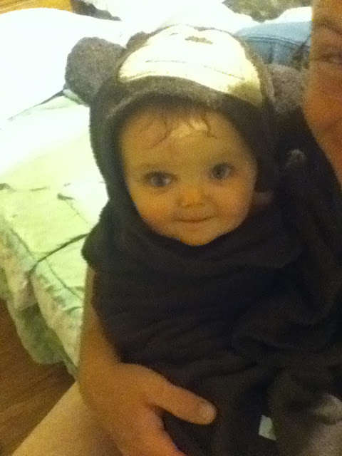 Bailey was clean. The house was still in order. There wasn't even a single block on her bedroom floor! Daddy is amazing! He had put her down for a nap (a feat that only my Nana and I had been capable of in the past) and while she was asleep he swept and mopped the floors and cleaned the kitchen counters. When she woke up he vacuumed the living room rug, gave her some Cheerios, fixed her a sippy cup, and then before I got home he gave her a bath!